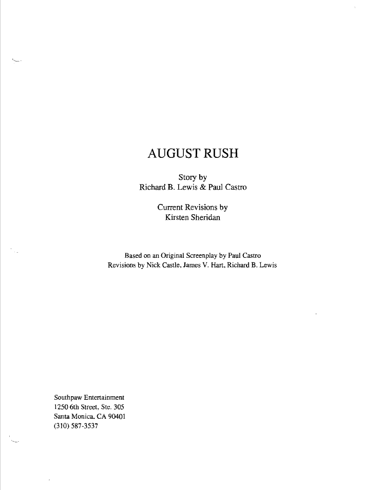 • Professionally formatted August Rush screenplay
