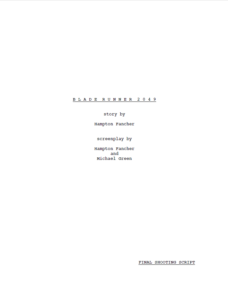 Professionally formatted Blade Runner 2049 screenplay
