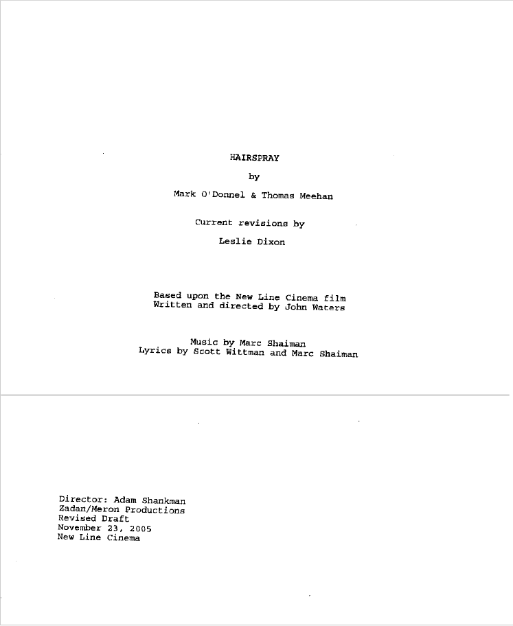 Hairspray Script (2007)