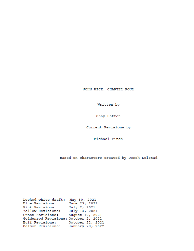 Professionally formatted John Wick: Chapter 4 screenplay