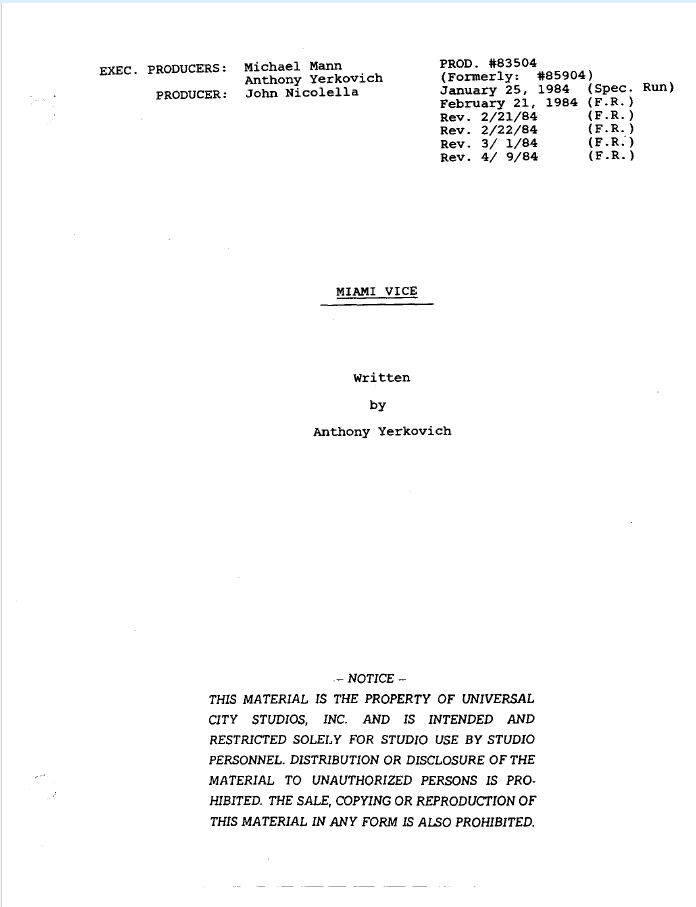 Order your Miami Vice TV Scripts here. Simply type it in or copy/paste into the box below. Please specify which script (EPISODE) you would like to purchase.