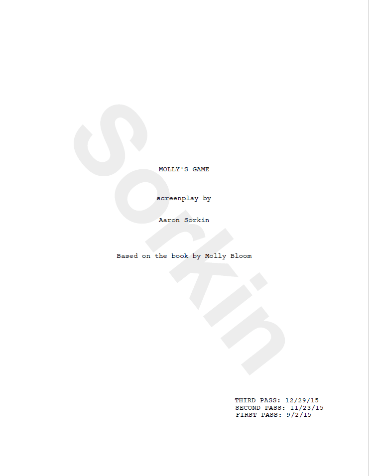 Professionally formatted Molly’s Game screenplay