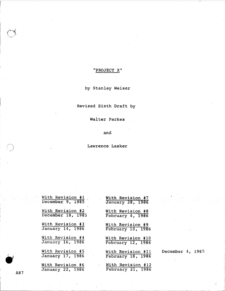 PROJECT X..STANLEY WEISER..2ND 2-21-86