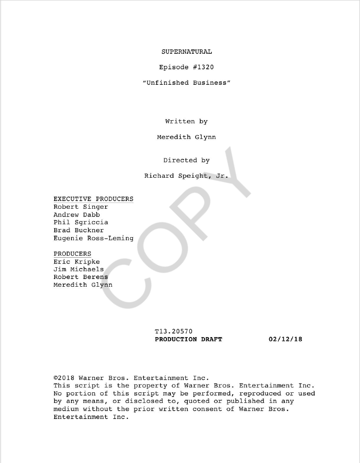Professionally formatted Supernatural television scripts (teleplays)