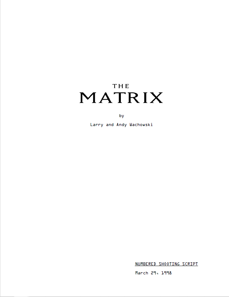 • Professionally formatted The Matrix Movie Script screenplay